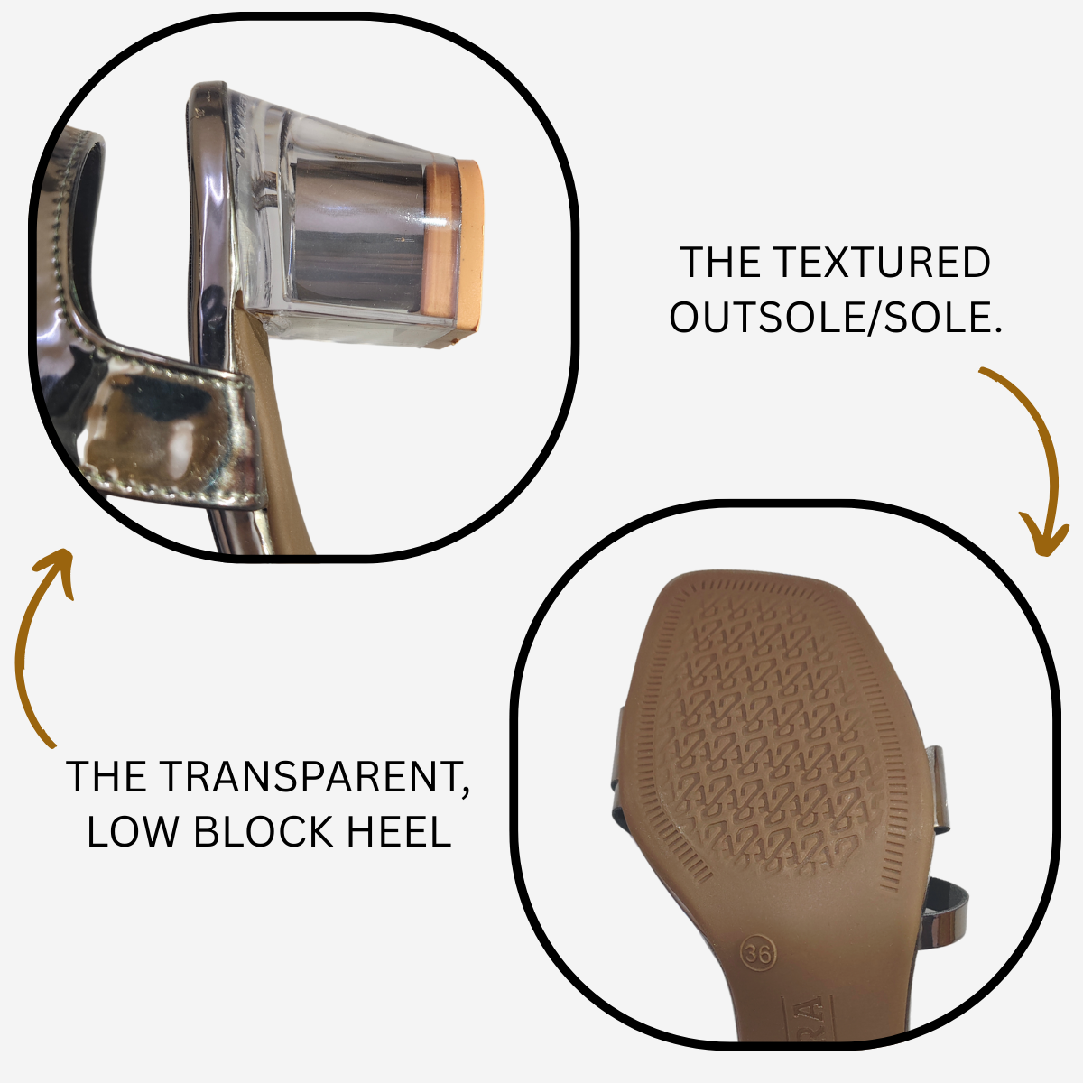 FAYORA Women’s Stylish Glossy Block Heel Sandals | Double Strap Slip-On Heels for Casual, Festive & Daily Wear