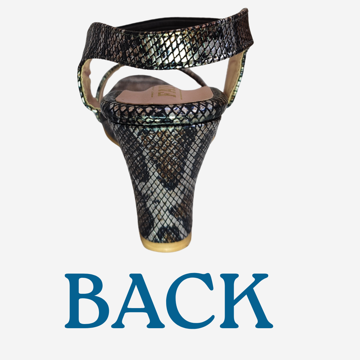 FAYORA Women’s Stylish Snake-Print Block Heel Sandals with Open Toe & Comfortable Ankle Strap | Trendy Casual & Festive Footwear
